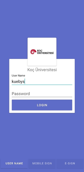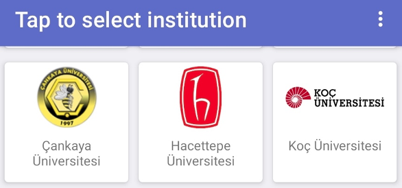 Click on “Tap to Select Institution” button on the screen that appears. KOÇ UNIVERSITY is selected.