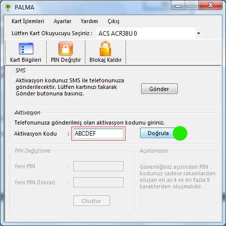 • Select the Activation option from the Card Processing menu.