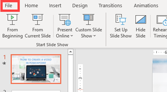 - If you are satisfied with your recording, you can export your slides as video. Click the File