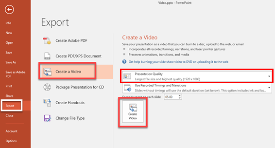 If the video size is too large, you can change Presentation Quality to reduce it.