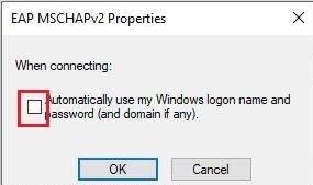 Make sure that "Automatically use my Windows logon and password.." is not selected and then click OK.