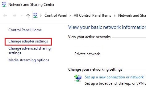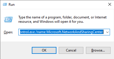 control.exe /name Microsoft.NetworkAndSharingCenter and press enter)