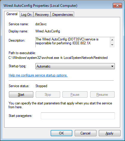 In the Ethernet Properties dialog box, select the Authentication tab and check “Enable IEEE 802.1x authentication.”