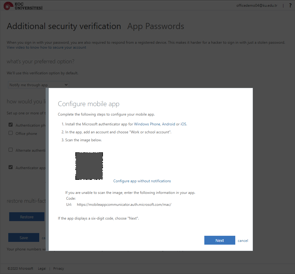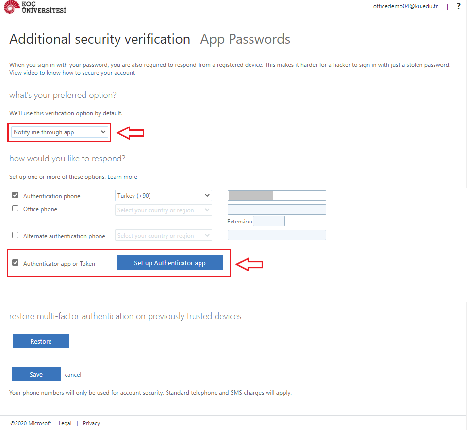You can also access your account with the "Microsoft Authenticator" application that you download to your phone instead of receiving an SMS code. With this method, independent of GSM service providers, you can access your account with your internet connection, with the code or notification you receive from the application.