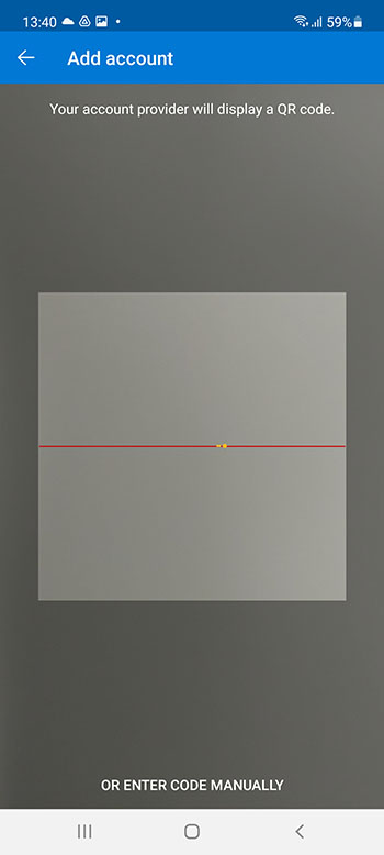 You will see a page containing the QR code and code information. Do not close this screen and open the "Authenticator" application you installed on your mobile device.