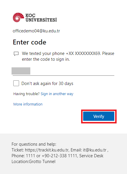 Verify by entering the authentication code that will be sent to your phone with the Text Me option.