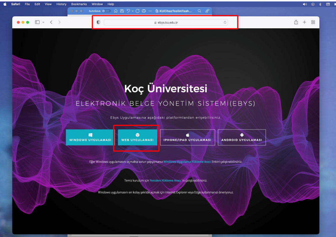 Visit: https://ebys.ku.edu.tr