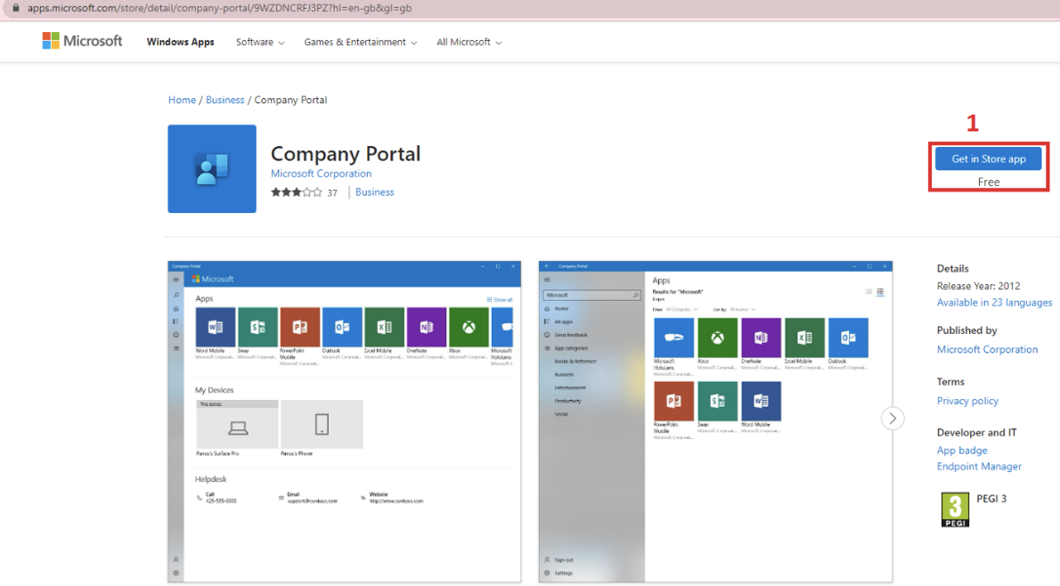Install Intune Company Portal on Microsoft Store.