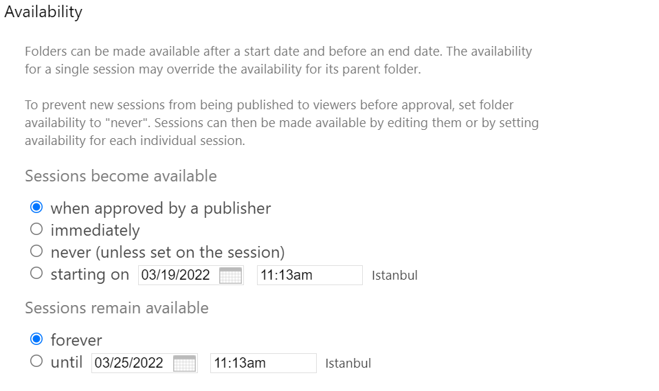 - Under sessions select the radio button label “When approved by Publisher”.
